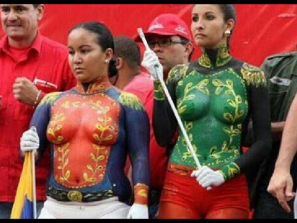 (PD BLOG) - Las redes sociales comienzan a inudarse con el asombro causado por unas “modelos” disfrazas de prócer en la conmemoración del 192 aniversario de la Batalla de Carabobo, en Venezuela. Las actrices aparecieron semi desnudas y con un bodypaint que simula uniformes patriotas de la época independentista venezolana.POLÉMICA EN VENEZUELA: Mujeres con bodypaint en la conmemoración de la Batalla de Carabobo.