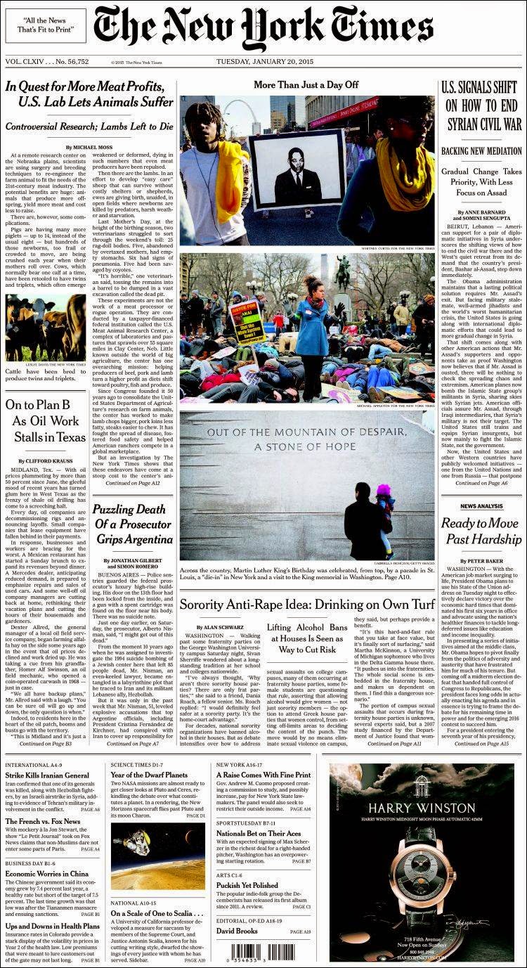 Primera Plana de este martes 20 de enero de 2015